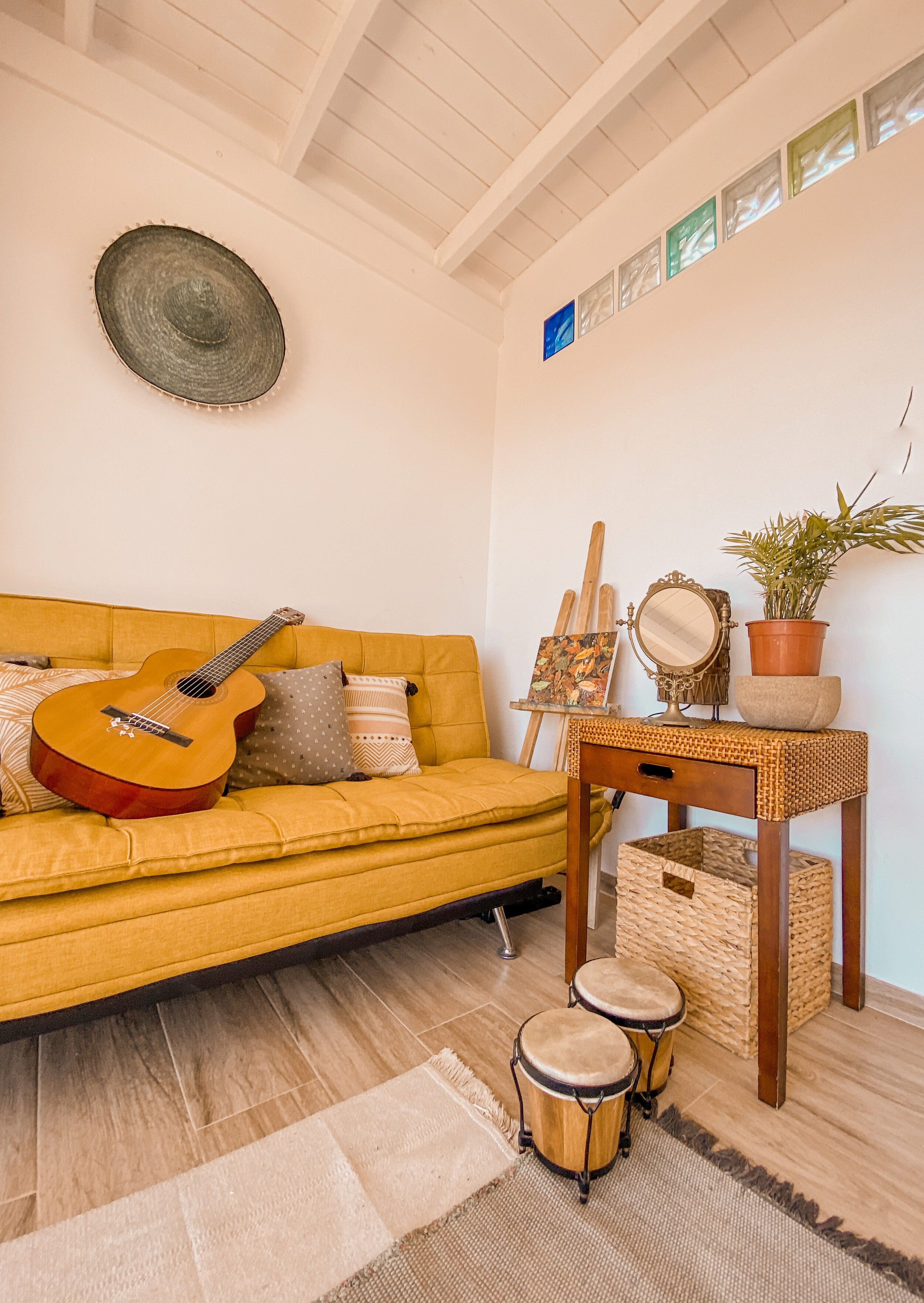 is a cozy studio divided into three areas: kitchen, bedroom with a double bed and living room with a sofá bed. Suitable for a couple or a small family.