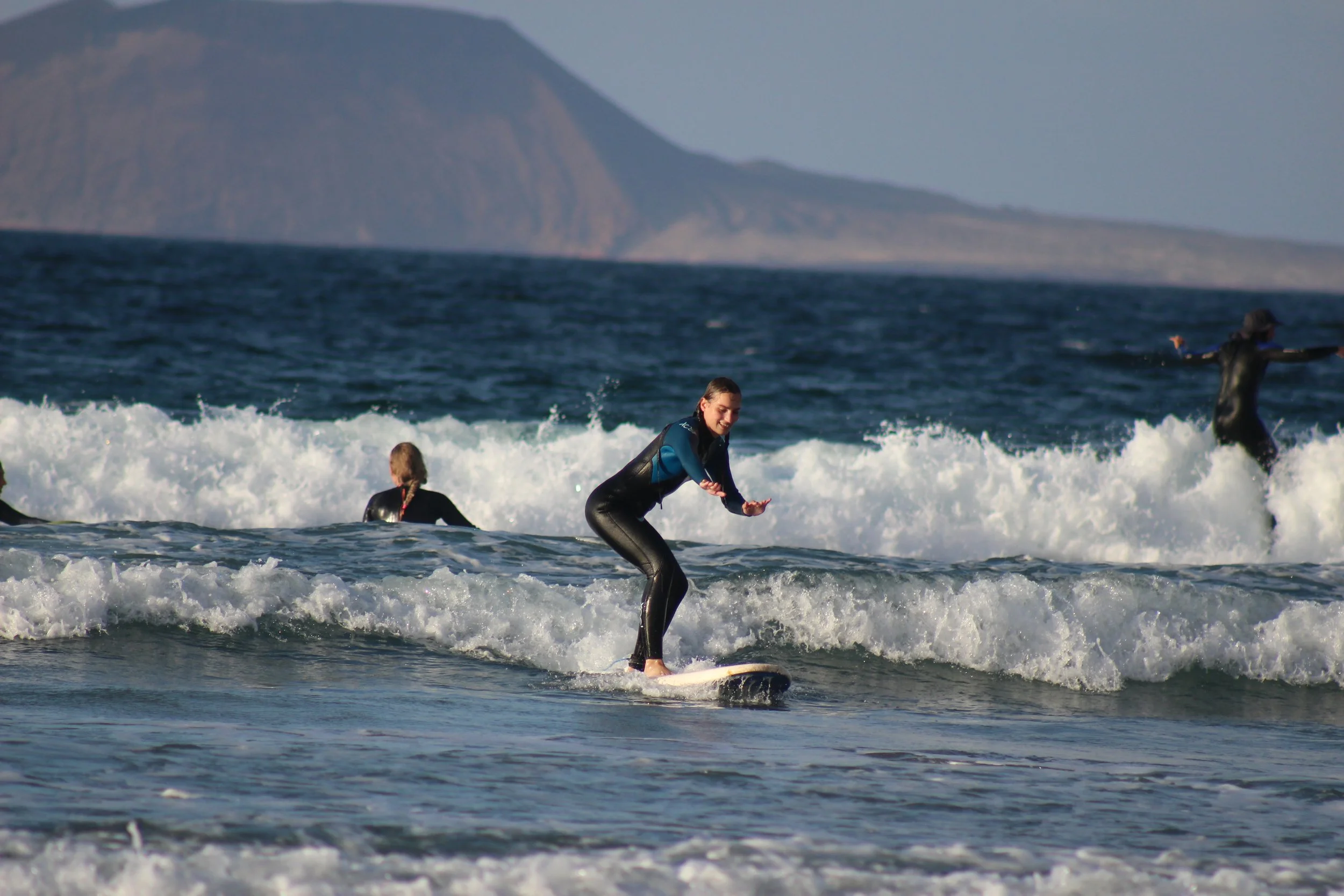 Surfing in the Canarian waters usually means surfing in a wetsuit. Even in summer and autumn months, the water temperature rarely rises above 23 degrees. You can see some more resistant individuals just in shirts and shorts or bikinis, but you will definitely be more comfortable using at least a 2 mm wetsuit.